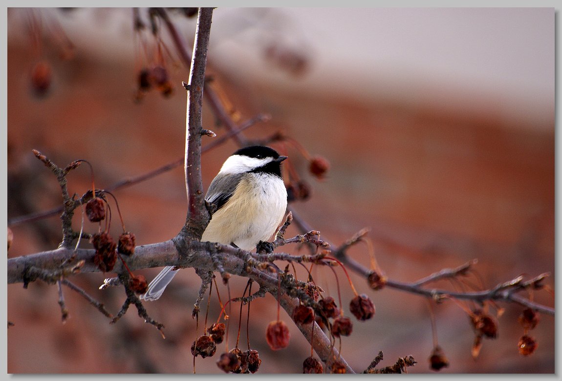 SGB 019 - Black-capped Chickadee in crabapple tree, Maine state bird