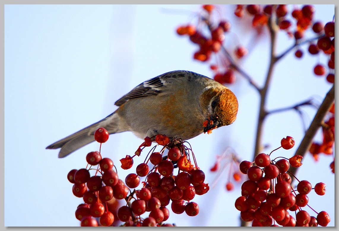 SGB 027 - Juvenile Pine Grosbeak eating crabapples